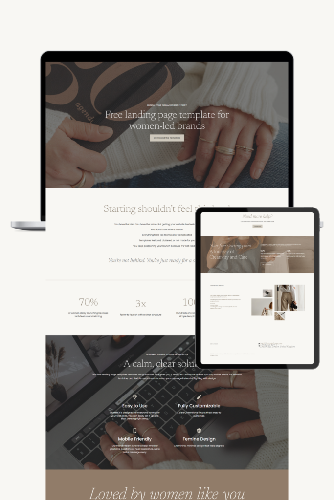This free landing page template removes the guesswork and gives you a ready-to-use structure that actually makes sense. It’s minimal, feminine, and flexible—so you can focus on your message instead of fighting with design.
